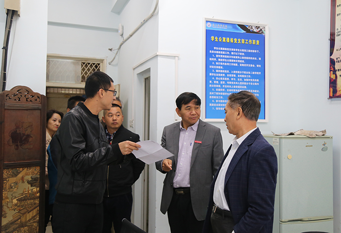 南洋社讯 12月14日,为做好创建第二届省级文明校园迎检工作,党委书记施水成,副校长张东宏、何卫华带领文明创建督察组工作人员深入教学楼、学生公寓、学生食堂、运动场、实训中心等区域督察创建文明校园工作。
