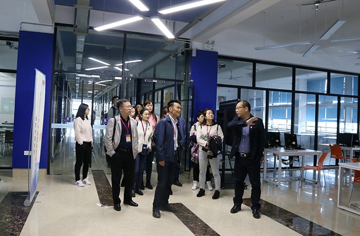 考察团在南洋学院党委委员、校党政办主任李振杰的陪同下先后参观考察了学校的实训大楼和学生创业中心,大家对学校的校企合作项目、校园环境等赞不绝口。