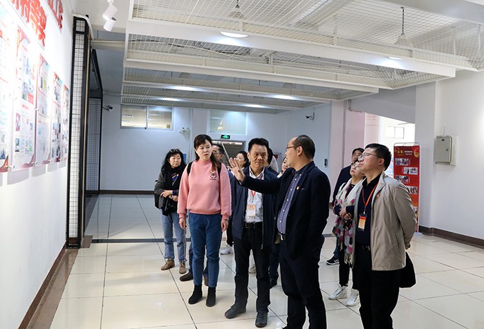在第一会议室,施水成书记以“创新平台,让高校党建思政工作与新时代共进”为题,结合实践,向考察团介绍了南洋学院近年来党建工作的特色工作、亮点做法及取得的突出成绩。