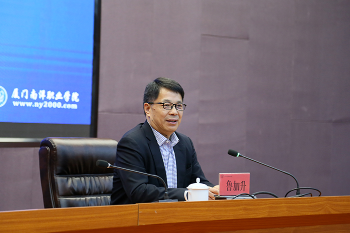 南洋社讯 昨日(3月20日)下午,厦门南洋学院在仙岳报告厅召开2019年度工作会议,校长王豫生作报告,董事长、执行校长鲁加升讲话,党委书记、副校长施水成主持会议,校领导潘世平、何卫华、张东宏、钟石根出席会议,全校副科级以上干部、教研室主任、党支部书记以上党务干部参加会议。