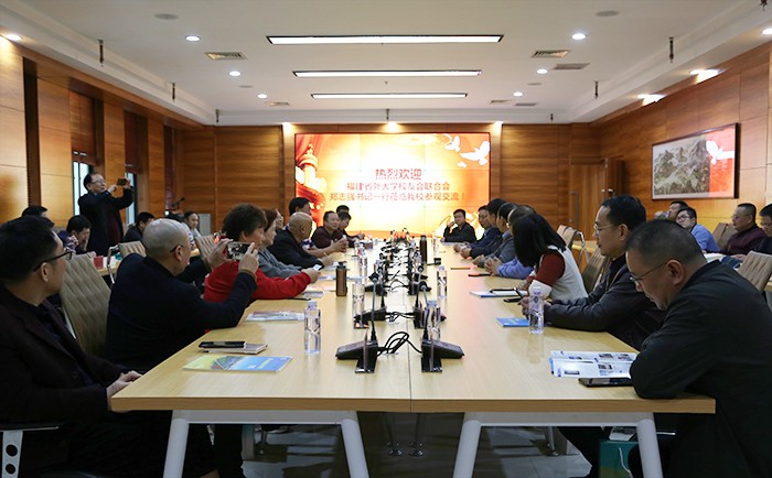 南洋社讯 3月23日下午,福建省外大学校友会联合会党支部书记郑志强带领32名成员到厦门南洋学院参观交流。党委书记、副校长施水成,党委委员、副校长何卫华,党委委员、党政办主任李振杰,校长助理、教务处处长钟石根等陪同参观。董事长、执行校长鲁加升与访问团进行座谈。