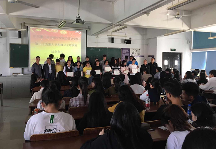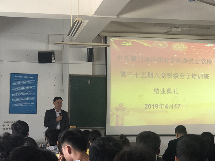 南洋社讯 昨日(4月17日),党校第35期入党积极分子培训班结业典礼在教学楼A栋301举行。党委委员、副校长何卫华,党委委员王晨出席典礼;王晨主持典礼;党总支书记、全体学生党员、党校第35期培训班学员参加典礼。