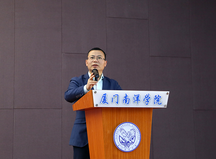 在裁判员代表和参赛选手代表宣誓后,张东宏副校长宣布“厦门南洋学院第七届职业技能竞赛”正式开幕。