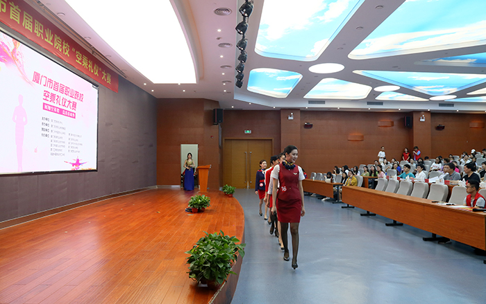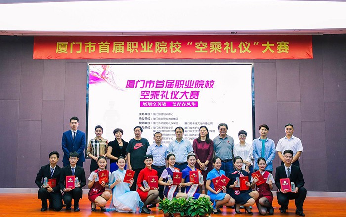 南洋社讯 高颜值正当青春韶华,新素养彰显少年风采,强技能展示空乘面貌。2019年5月25日由厦门旅游培训中心主办,厦门市旅游职业教育集团承办,厦门沐尚国际礼仪学院、厦门美卡洛文化传播公司赞助的厦门市首届职业院校“空乘礼仪”大赛在厦门南洋职业学院圆满落幕。