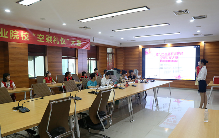 厦门文化馆魏小春副馆长、福建省文史研究馆萧冰教授、国家职业资格考评员陈静和老师、原厦门航空公司空中乘务部吴丽真老师担任本次大赛的评委老师。厦门旅游集团副总经理郭艺勋,厦门旅游职业教育集团总经理、校长助理钟石根等领导为获奖选手颁奖。厦门卫视,厦门日报和海峡导报等媒体对本次比赛进行了全方位的报道。