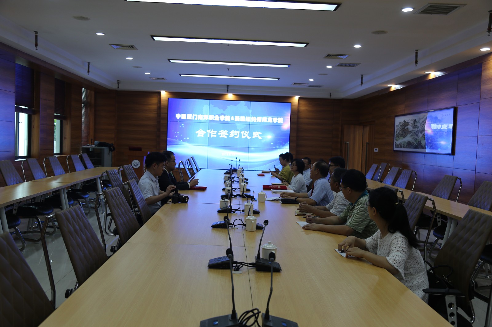 南洋社讯 6月14日下午,厦门南洋学院与美国库克大学(Keuka College) 合作签约仪式在南洋学院第一会议室举行。董事长、执行校长鲁加升,常务副校长康乃美,校长助理兼教务处处长钟石根出席签约仪式。出席签约仪式的外方代表有美国库克大学中国总校区校长黃磊康Joseph R. K. Hwang、美国库克大学副教务长Tim Sellers。各相关部门负责人参加仪式。