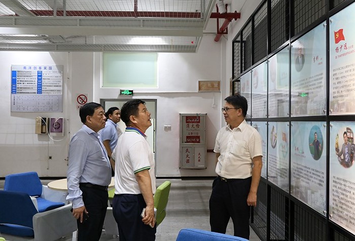 南洋社讯 6月14日下午,中华职业教育社党组书记、总干事方乃纯,中华职业教育办公室主任、总社组宣部部长马翠娥,全国政协委员、民建福建省委主委、福建省中华职教社主任吴志明,福建省委统战部部务会议成员、省中华职教社党组书记王秋梅等一行到厦门南洋学院考察调研。董事长、执行校长鲁加升,党委书记施水成,常务副校长康乃美,副校长张东宏、何卫华及相关部门负责人陪同参观。
