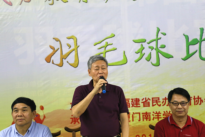 南洋社讯 昨日(6月23日)下午,由厦门南洋学院承办的福建省民办教育协会高专委羽毛球赛闭幕式在翔骏羽综合馆举行。省民协会长袁德俊,省民协副会长、高专委轮值理事长、南洋学院董事长鲁加升,党委书记施水成,常务副校长康乃美出席闭幕式。来自全省10所民办高校的48名运动员、裁判员等参加闭幕式。