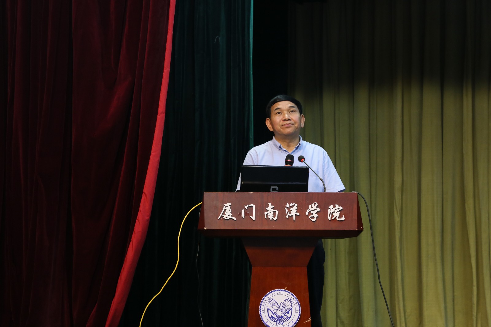 南洋社讯 昨日(7月5日)下午,厦门南洋学院在活动中心礼堂召开2018-2019学年第二学期工作总结大会。校领导王豫生、鲁加升、施水成、康乃美、张东宏、何卫华、钟石根出席会议。董事长、执行校长鲁加升发表讲话,党委书记施水成对学期工作进行小结,副校长何卫华主持会议。全校教职员工、企业代表参加会议。