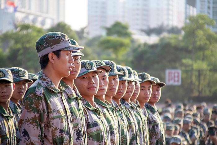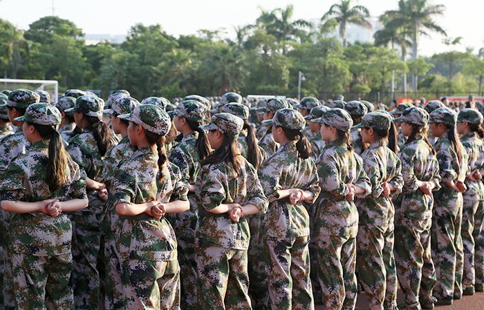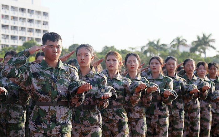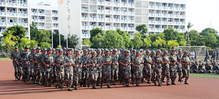 大会在庄严的国歌声中拉开帷幕。鲁加升董事长一一检阅各军训团,向多天来辛苦军训的新生致以亲切的问候。各军训团军容严整、精神饱满,以昂扬的斗志、嘹亮的口号,整齐有序地踏正步依次通过主席台接受检阅,向主席台领导展示了南洋学子朝气蓬勃、奋发向上的精神面貌,赢得了阵阵热烈的掌声。