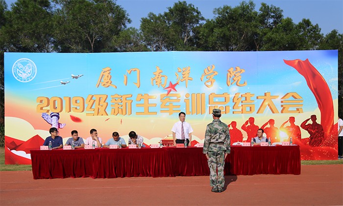 南洋社讯 昨日(9月17日)下午,厦门南洋学院2019级新生军训总结大会在运动场举行。董事长、执行校长鲁加升,副校长何卫华出席大会,全体小教官、新生辅导员及全体新生参加大会。