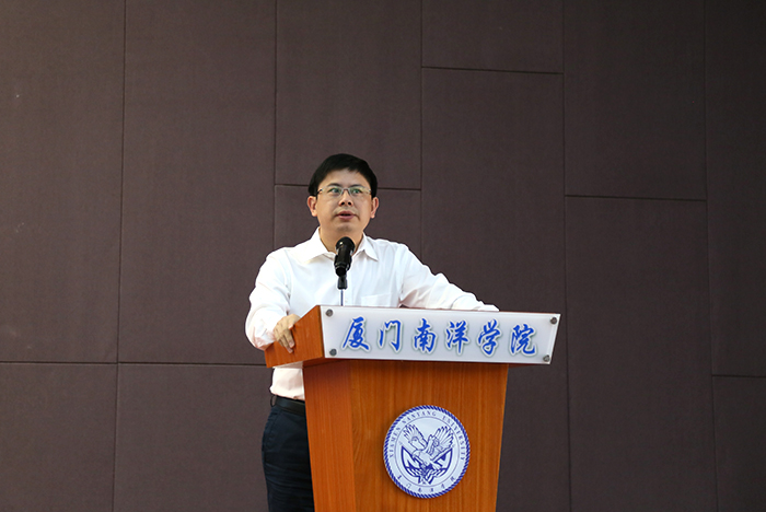 南洋社讯 今日(11月1日)上午9:00,2019年厦门市高等职业院校技能竞赛开幕式在厦门南洋学院仙岳报告厅隆重举行。厦门市教育局高教与职教处处长陈哲新,厦门南洋学院董事长、校长鲁加升,厦门兴才职业技术学院校长郝超,厦门安防科技职业学院董事长、校长陈春,南洋学院党委书记施水成,厦门城市职业学院副校长吴松青出席仪式。陈哲新处长讲话;施水成书记致辞;会议由南洋学院副校长何卫华主持。各高职院校相关负责人,相关行业协会、企业代表,裁判员代表和师生代表参加开幕式。