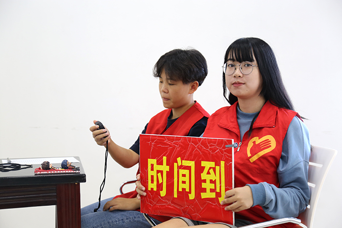 在导游服务赛场,来自全市7所高职院校的14名选手严格按照比赛规程检录,逐一抽签决定比赛顺序。我校旅游管理专业黄芷琪、钟巧玲两名同学参加竞赛,指导教师分别为母则闯、朱赛洁。比赛分为导游知识测试、现场导游词创作及讲解、自选景点导游讲解、导游英语口语测试四个环节。其中,现场导游辞创作及讲解、自选景点导游讲解是比赛的核心环节,占总分的65%。赛场上,选手们个个衣着得体、落落大方、声情并茂,使出浑身解数,将引人入胜的神奇故事融入导游词中,用动人的语言带评委和观众领略了祖国的大好河山与秀美风景,也充分展现了过硬的导游专业技能和高水平的职业素养。