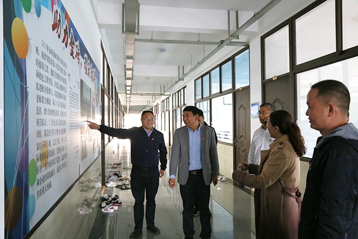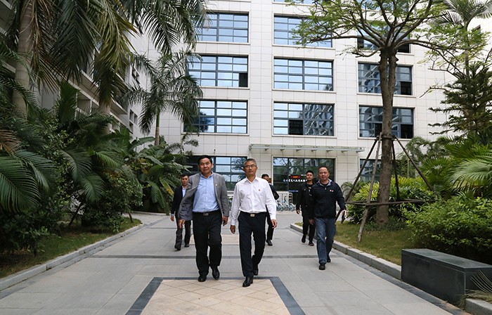 在双方签订完共建协议后,张清海书记一行在党委书记施水成、副校长何卫华等的陪同下,参观了学校的科研实训大楼。
