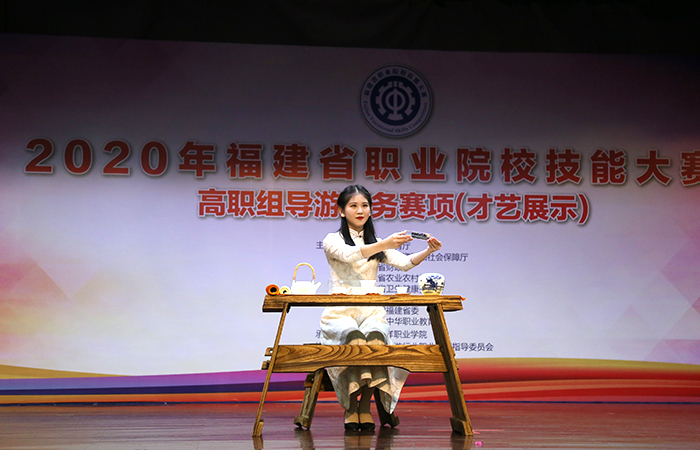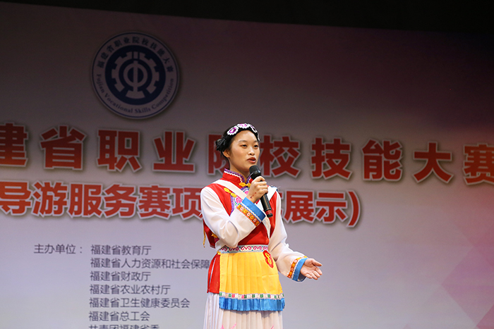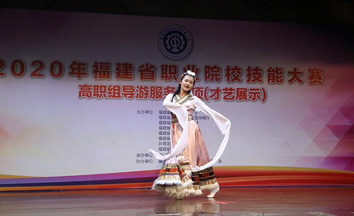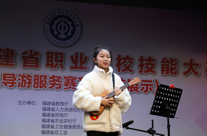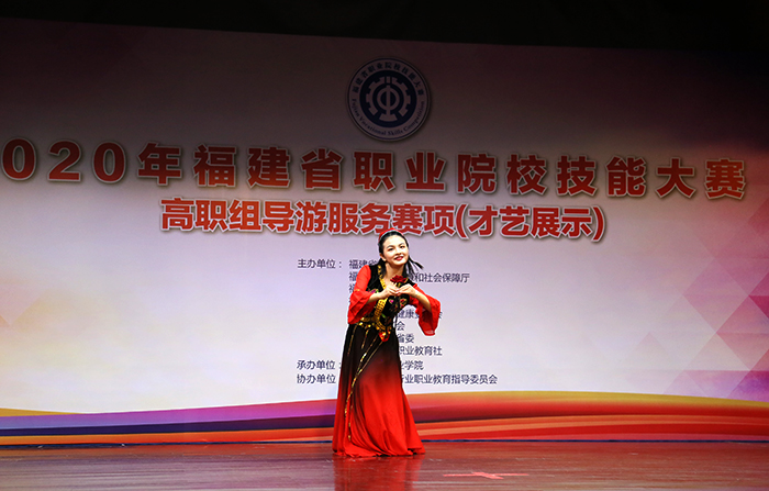 在才艺运用赛场,参赛者们模拟带团过程,向团友们展现一段符合导游职业特点的才艺表演。歌唱、民族舞、现代舞、南音、诗朗诵、乐器演奏等形式多样的才艺,让观众目不暇接,博得现场热烈喝彩。而英语口语的测试方式为现场对话,主要考查选手运用英语服务游客的实操能力。选手现场抽取一个题目,准备 30 秒后开始与裁判进行3分钟的情景对话。英语口语是大部分选手比较薄弱的环节,但还是有几名选手脱颖而出,他们在5名裁判员的耐心引导下,对英语提问反应迅速,很快答出了得分点,充分展示了扎实的语言功底和赛前的精心训练。