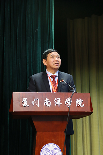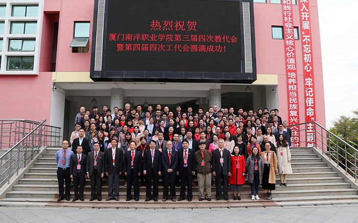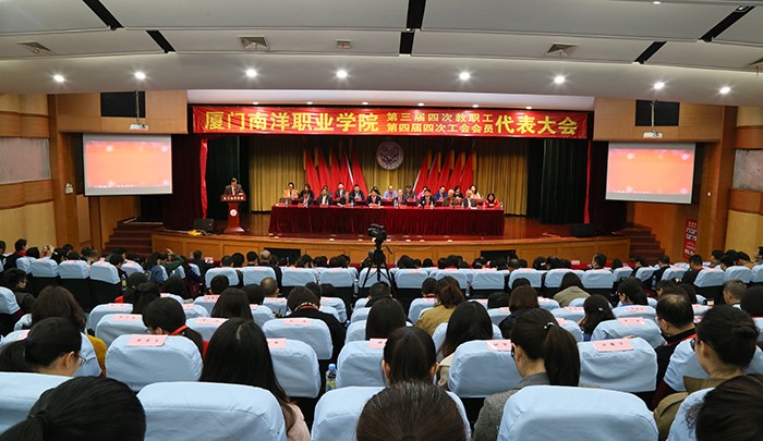 南洋社讯 今日(1月12日)上午,厦门南洋学院第三届四次教职工暨第四届四次工会会员代表大会在活动中心礼堂举行。校领导鲁加升、施水成、康乃美、张东宏、何卫华、钟石根及老领导王豫生、范骏义、黄润理出席会议。董事长、校长鲁加升发表重要讲话;党委书记施水成致开幕词;常务副校长康乃美作学校工作报告;副校长何卫华主持会议并作工会工作报告;全体教职员工参加会议。