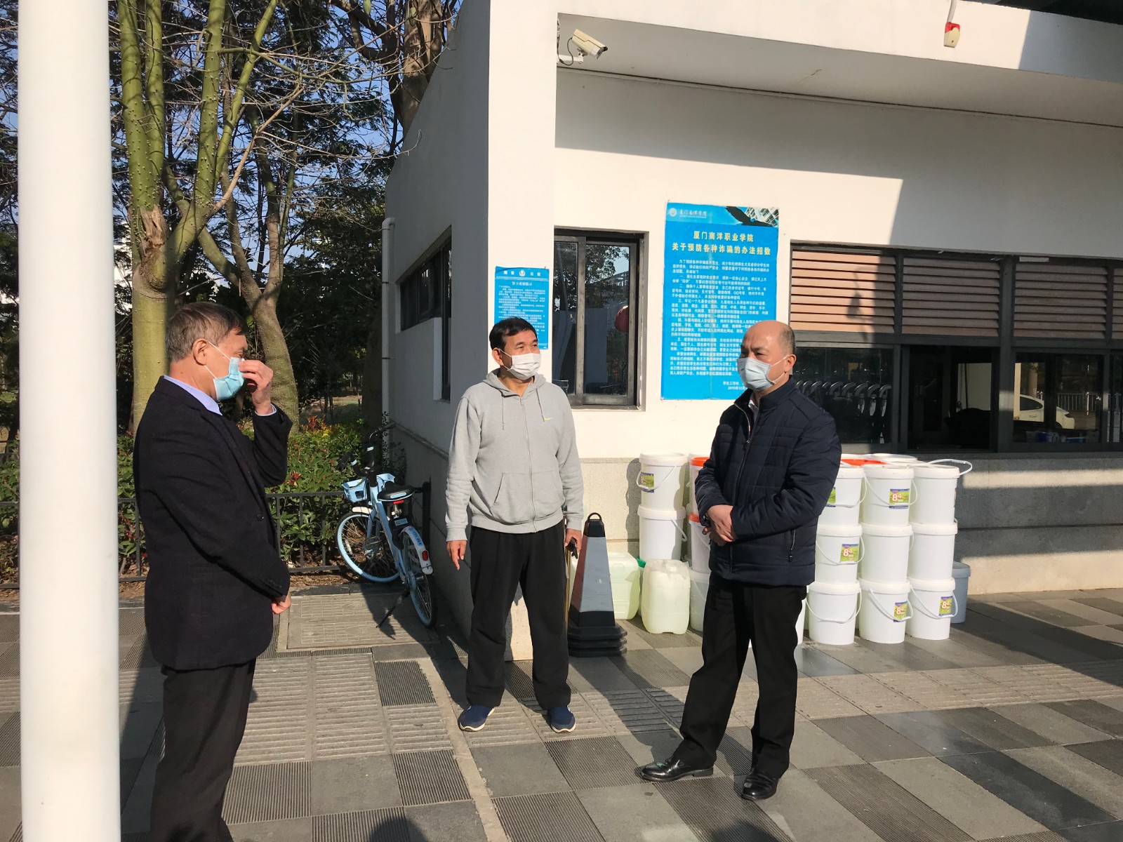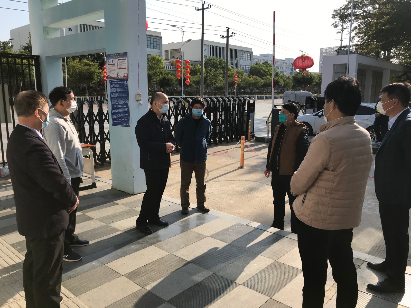 郭献文局长一行重点视察了我校门岗管理的疫情防控工作,详细了解我校防控方案的制定与实施,特别询问了物资配备情况、师生健康状况和“停课不停学”情况,并对我校下一阶段的防控工作给予了具体指导。他强调,目前疫情形势依然严峻,群防群治正处于关键阶段。学校师生是一个很大的群体,要时刻绷紧疫情防控这根弦,千万不能有丝毫大意,切实保障全校师生的生命安全和身体健康。
