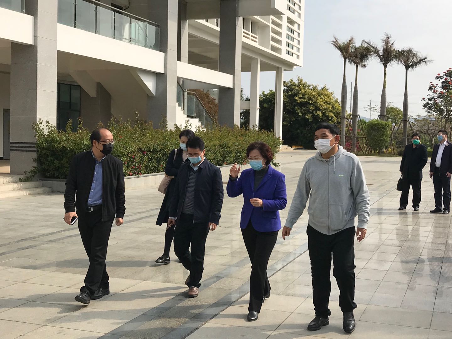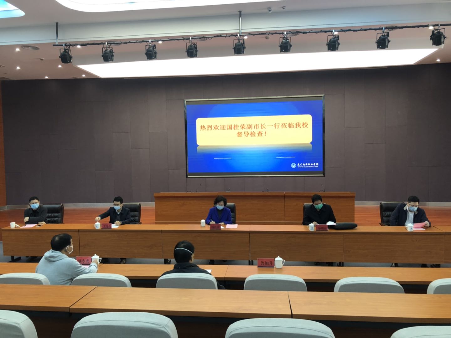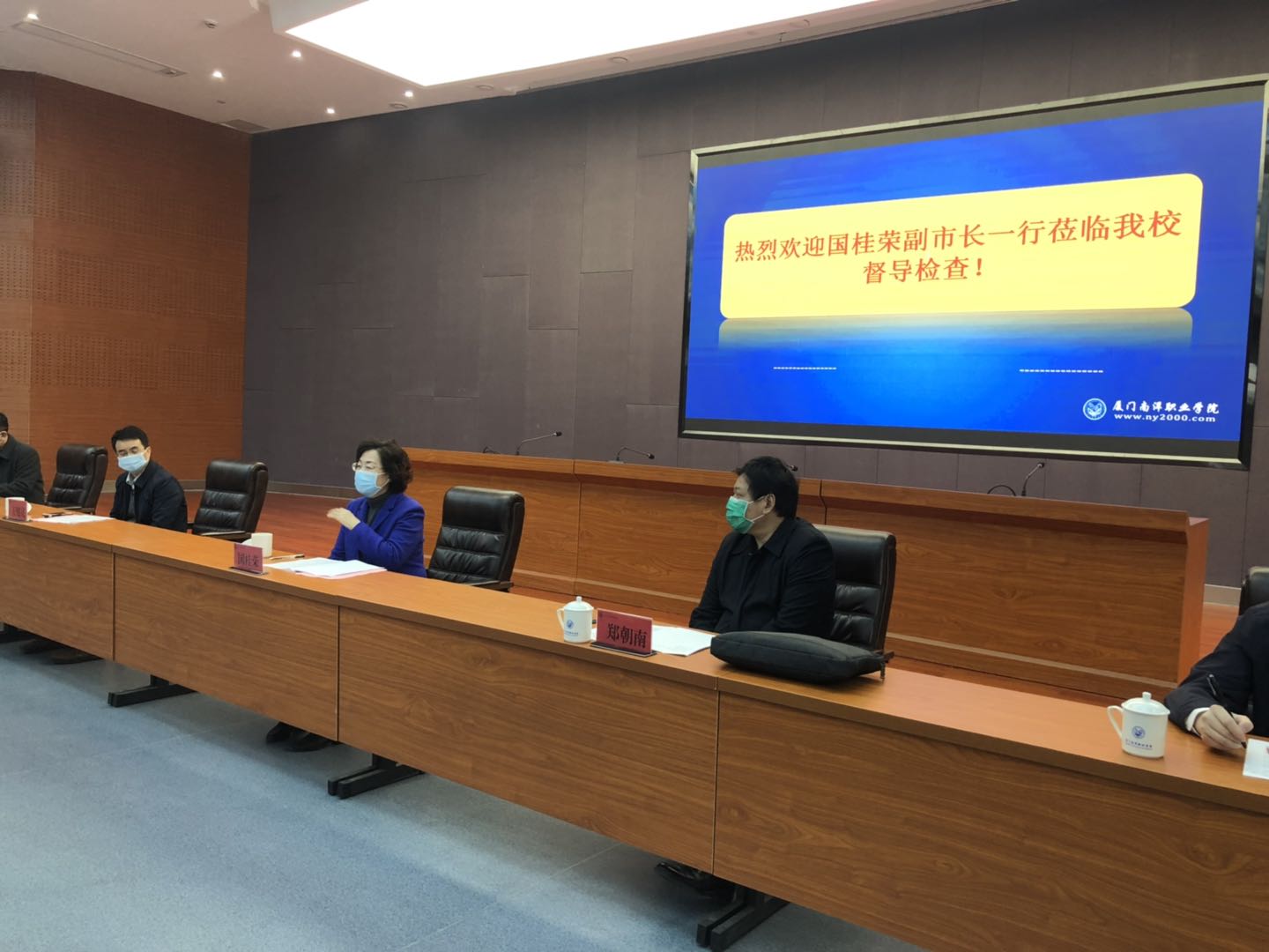 南洋社讯 今日(3月3日)上午,厦门市副市长国桂荣,市政府办副主任王庭亮,市教育局副局长郑朝南一行莅临我校督导检查新冠肺炎疫情防控工作及开学前准备工作。董事长、校长鲁加升,党委书记施水成,副校长何卫华,校长助理兼教务处处长钟石根及各相关部门负责人陪同检查。