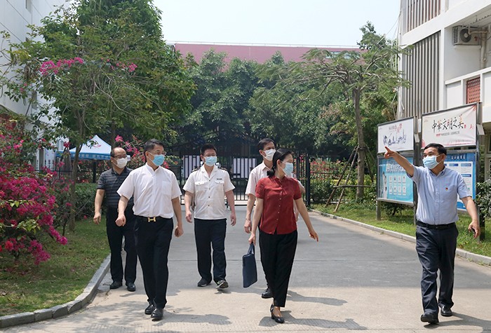 为落实教育部、福建省关于春季学期返校开学工作部署,确保将疫情挡在校门外,实现平安开学,有序开学。5月6日上午,由教育工委常务副书记施琦婷率领的市教育局返校复学工作评估组饶衍强、陈福平、许志坚等领导来校检查开学返校准备工作,我校董事长、校长鲁加升,党委书记施水成,常务副校长康乃美,副校长张东宏,副校长何卫华,校长助理兼教务处处长钟石根及各相关部门负责人陪同检查。