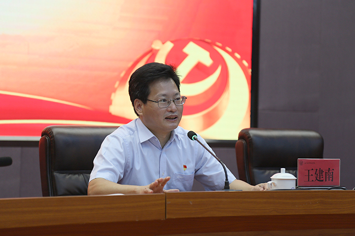 王建南副书记充分肯定了两年来作为全省首批高校党建工作示范点的建设工作,对继续扎实做好党建思政基础工作作出“六个全面”的指示:一是全面提升加强学校党建体系的建设;二是全面加强党的组织体系建设;三是全面加强建立党建规模体系;四是全面构建三全育人体系;五是全面构建校园政治稳定安全体系;六是全面加强思想政治班子队伍建设。强调,要继续落实好教育部“五个一律”以及福建省“11个一律”的防控工作要求,确保师生身体健康和生命安全,并就进一步做好下一阶段防控工作提出要求。