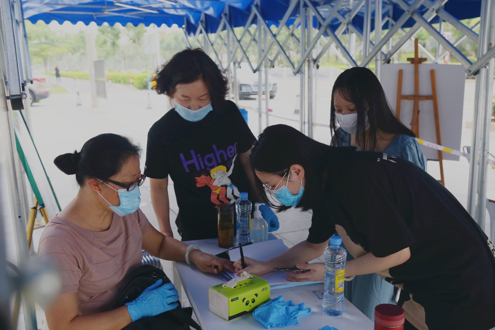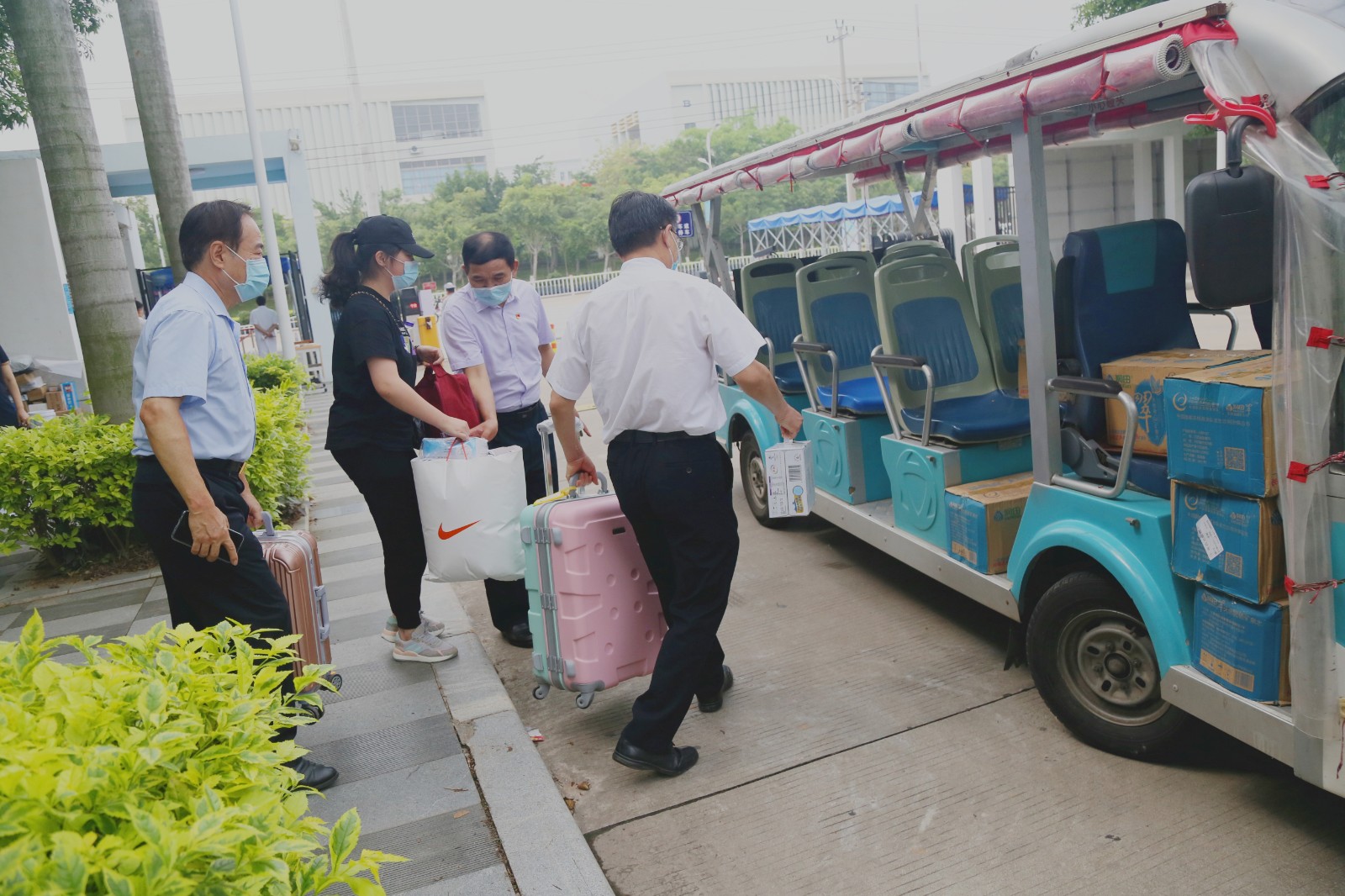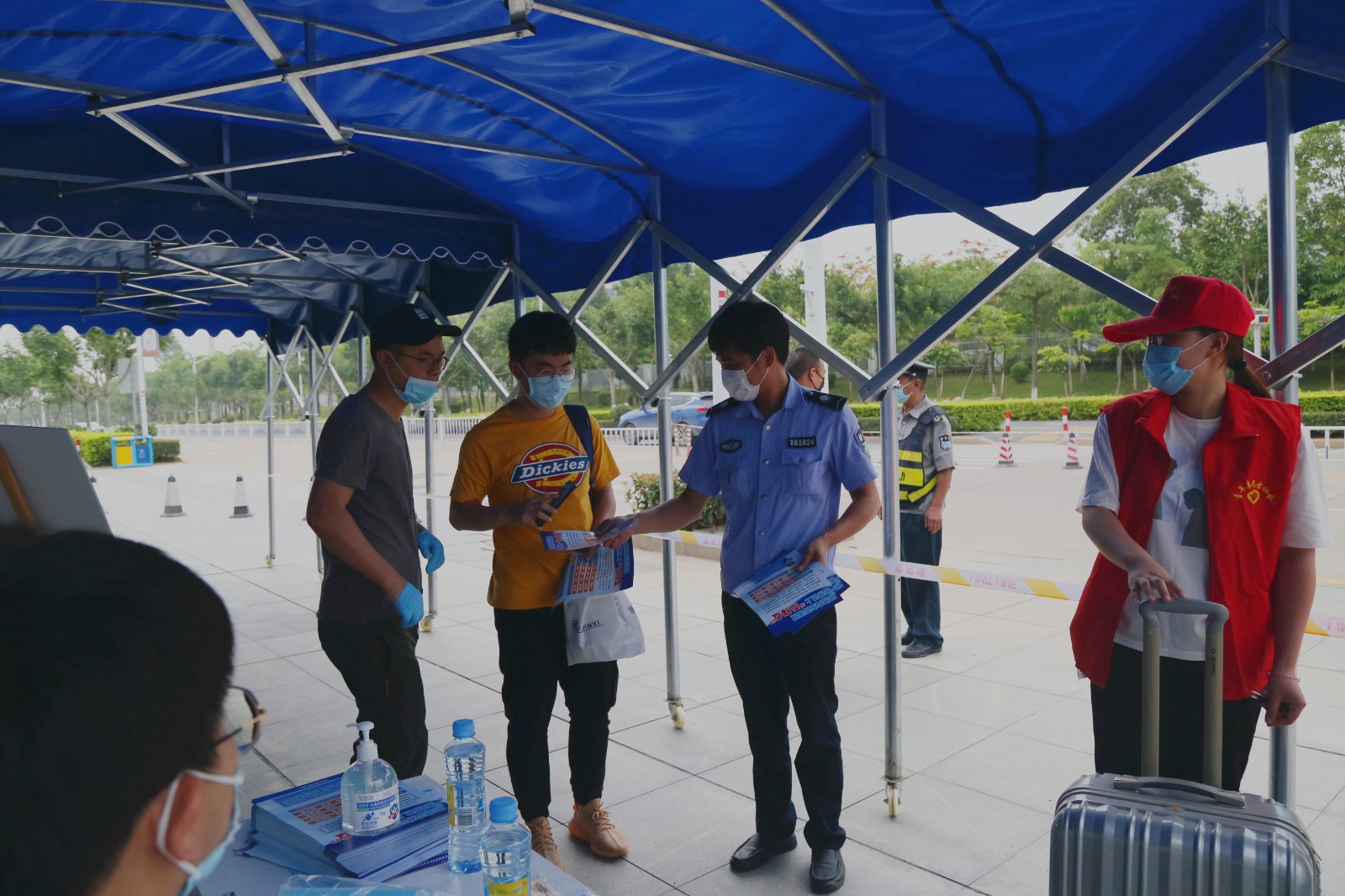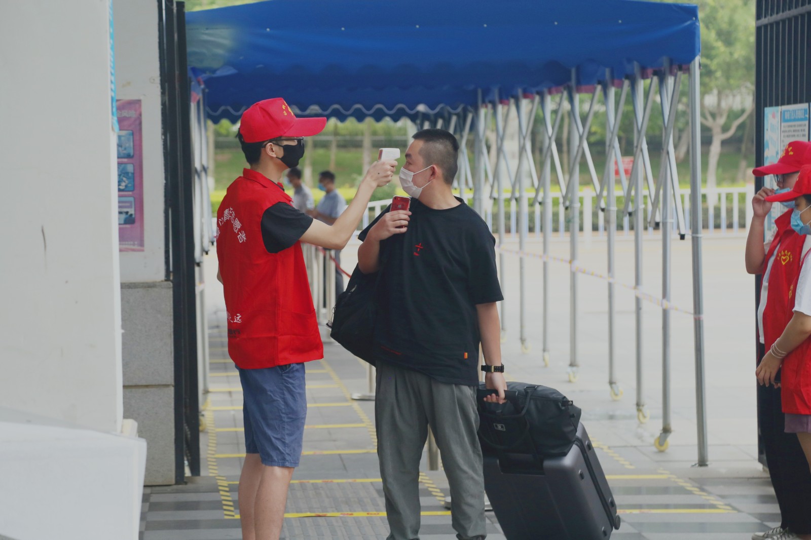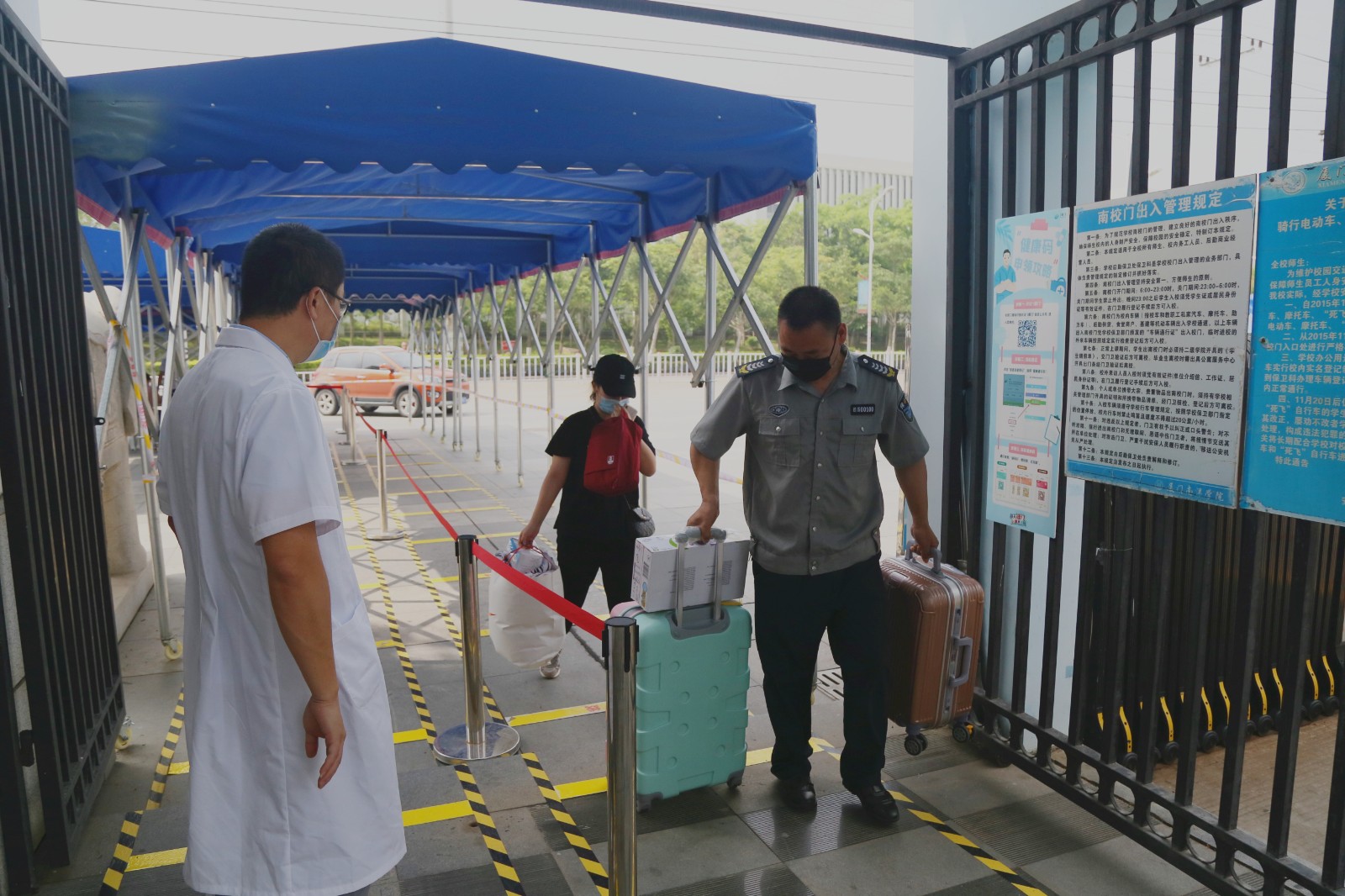 伴着清晨的微光,工作人员、志愿者们早早地上岗,等候首批返校的学生。为确保同学们顺利、平安返校,学校做了充足的准备,从各大车站的接站,到校门口的消毒、检测与查验,再到宿舍二次身份登记和体温检测,各领导、行政人员、辅导员、教师,主动请缨,冲锋在前,为返校学生保驾护航。