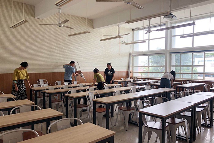 教职员工对办公、学习、活动和生活的教室、办公室、实验实训室、计算机房、图书室、阅览室、学生公寓、活动中心、食堂、卫生间等公共场所、重点部位以及师生员工经常触摸的设施、设备、物品等进行了全方位清洁和消毒。校领导地毯式走访排查、严格把关,全校领导教职工为学生们营造了安全、温馨大家庭的氛围。升级改造后崭新的宿舍,卫生、整洁、文明的校园,都在欢迎南洋学子回家。
