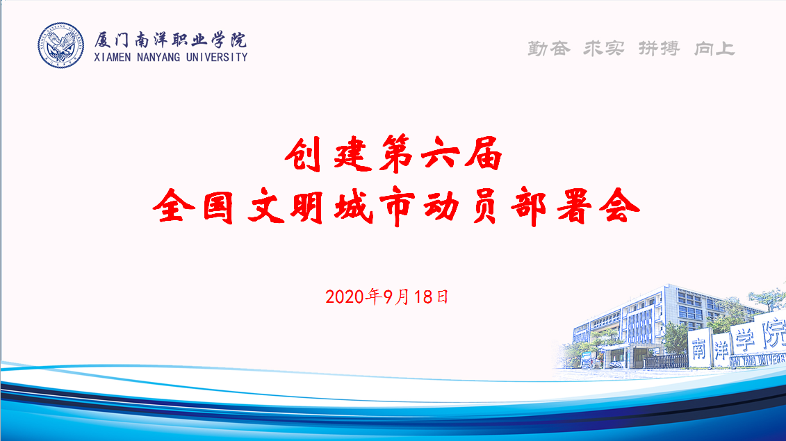 学校党委书记、文明建设领导小组常务副组长施水成指出要深入学习贯彻习近平总书记关于精神文明建设的重要论述,以更严格的标准全面提升文明校园创建水平,为厦门市创建第六届全国文明城市奉献南洋力量。