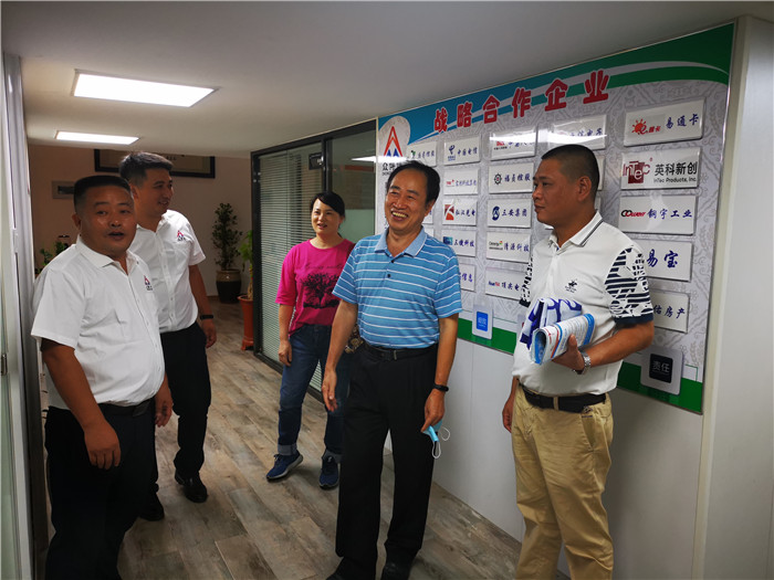 9月17日下午,康乃美常务副校长、何卫华副校长、校友总会吴香珍秘书长等一行5人走访吴炳辉校友的冠军照明企业。