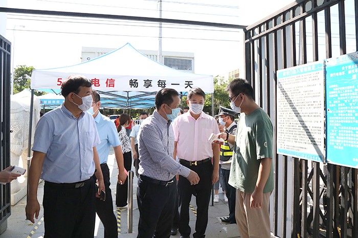 吴副厅长详细了解新生入学防疫流程及校园防疫工作准备情况,对我校细致规范的防疫工作给予充分肯定。
