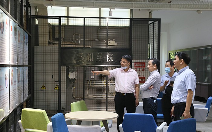 在创业活动中心,董事长、校长鲁加升向吴副厅长详细介绍了学校常年坚持推进 “三创”协同育人勤工助学,已为社会输送了近4万名高素质技术技能人才等相关情况。吴伟平副厅长对南洋学院注重理实一体化教学和应用型技术技能人才的培养模式表示赞许。