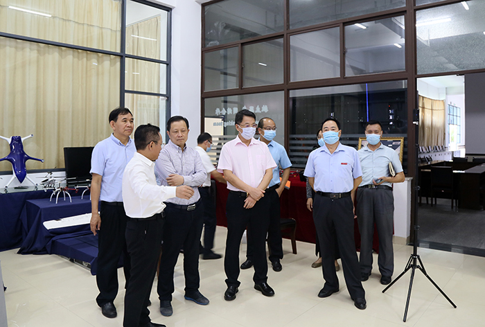 吴副厅长参观了学校实训楼,饶有兴趣地观看了机器人、无人机表演,详细听取专业建设、教育教学和实习实训等情况。