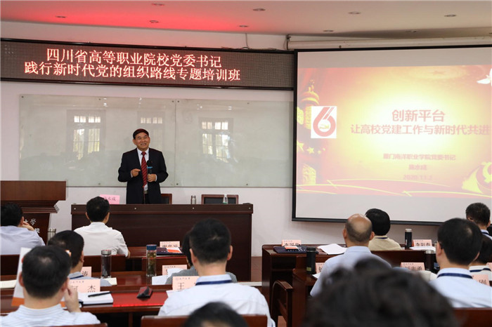 11月2日,四川省公办高职院校党委书记“践行新时代党的组织路线”专题培训班在厦门大学开班。国家教育行政学院特邀高校党建培训专家、厦门南洋学院党委书记施水成应邀第一讲,为来自四川省各高职院校的47位党委书记讲授《创新平台,让高校党建与新时代共进》并获高度肯定。