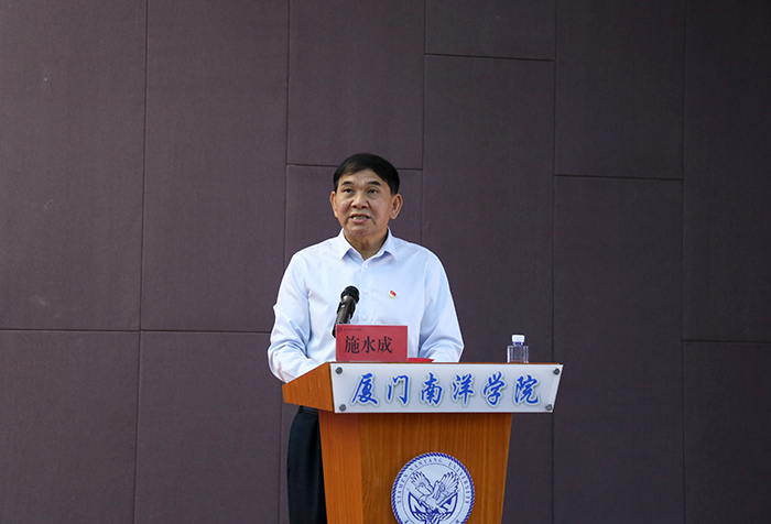 党委书记施水成在致辞中指出,技能大赛推动了产教融合、校企合作,促进了人才培养和产业发展的结合,已经成为广大师生展示风采、追梦圆梦的广阔舞台,成为促进我市职业教育发展的重要抓手。南洋学院作为承办方之一,坚持“创业型、创新型、开放式”办学,注重培养外向型、复合型、应用型人才,已成功承办六年厦门市高等职业院校技能竞赛,获得好评。今年负责承办开幕式和英语口语、导游服务、园林景观设计与施工、学前教育专业教育技能、大数据技术与应用等5个赛项,将全心全意为本次大赛提供便捷周到的服务。
