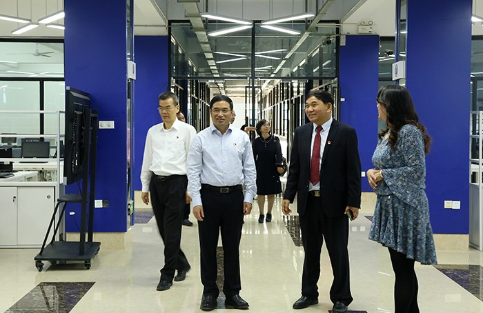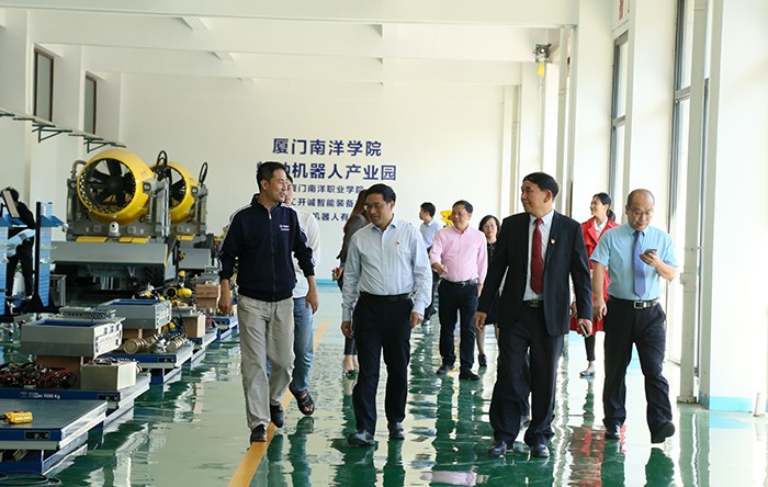 在实地考察环节,考评组专家一行前后前往特种机器人产业基地、科研实训大楼、教学楼、创业活动中心、学生宿舍、食堂、禁毒宣教室、校史馆、图书馆等地实地考察文明校园创建情况,深入了解我校办学理念、办学条件、创建氛围、阵地建设、校园文化环境建设等。