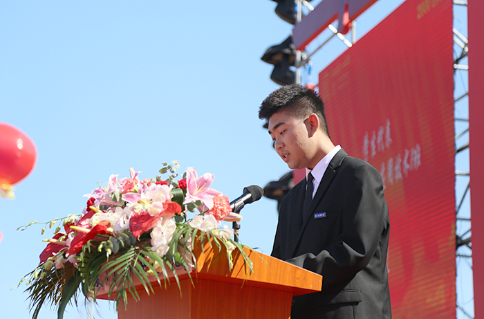 2020级无人机应用技术1班李勃良代表全体在校学生,为母校20周年华诞献上祝福。作为一名南洋学子,他为母校流光溢彩的漫漫征程而骄傲,为母校历经的风雨而自豪,为母校一路走来的铿锵坚定而歌唱。