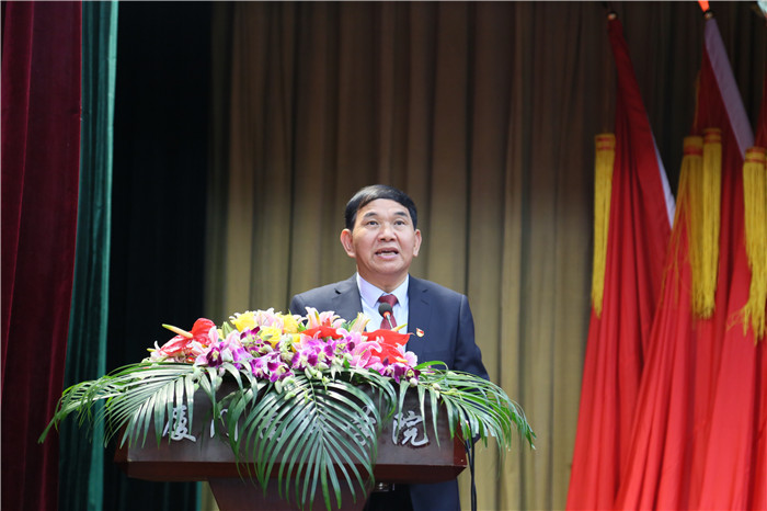 董事长、校长鲁加升同志代表学校董事会、学校行政对党员大会的胜利召开表示热烈祝贺,向为我校建设发展作出贡献的党员同志、党员干部致以诚挚问候。他指出,南洋学院是在党的正确领导下成立、发展、壮大的,20年来学校党组织和学校董事会、学校行政心手相连、同甘共苦、团结拼搏,一路风雨兼程,一路高歌猛进。他要求全校师生党员要继续高举中国特色社会主义伟大旗帜,更加紧密地团结在以习近平同志为核心的党中央周围,以本次党员大会召开为契机,进一步振奋精神,抢抓机遇,凝聚力量,奋发有为。