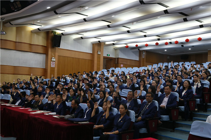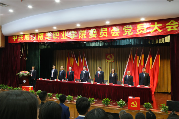 在雄壮的《国际歌》中,中共厦门南洋职业学院委员会党员大会胜利闭幕。