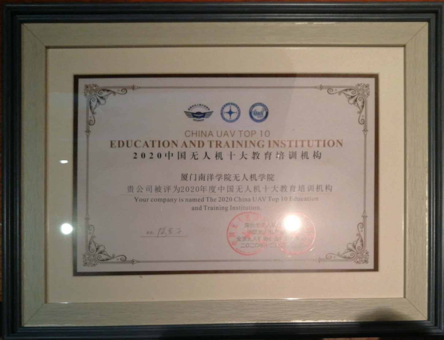 我校无人机学院应邀参加此次论坛,并凭借对无人机教育体系的独特理解与深研,被评为“2020 无人机十大教育培训机构”。
