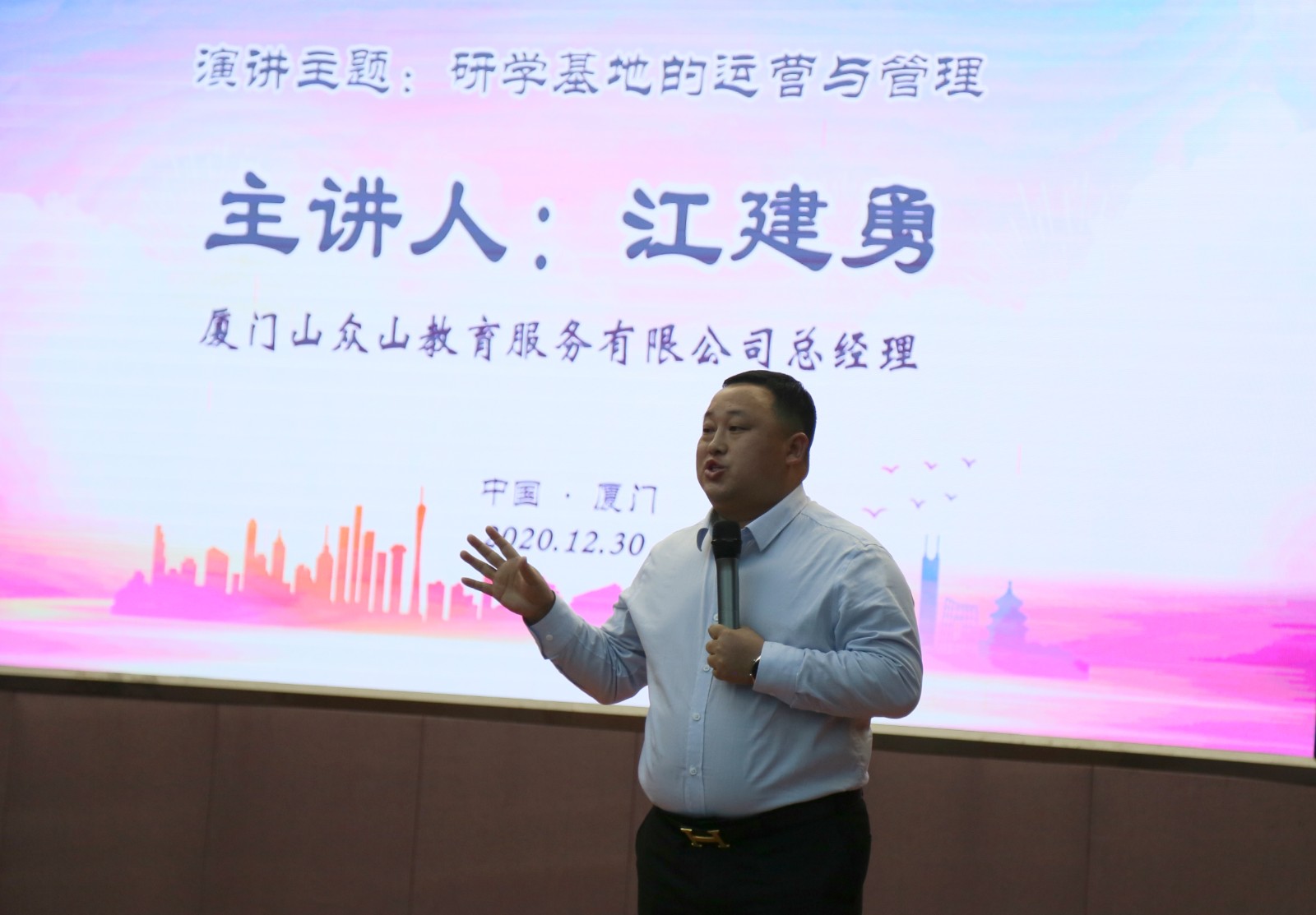 厦门知游信息科技有限公司副总经理唐许帅,厦门山众山教育服务有限公司总经理江建勇,厦门悠度营地科技教育有限公司总经理李正煌,厦门1989教育科技有限公司总经理庄东辉分别从不同层面,讲述了研学旅行业务各个板块的发展运营理念,为职教集团以及研学旅行业的蓬勃发展注入了全新的能量。