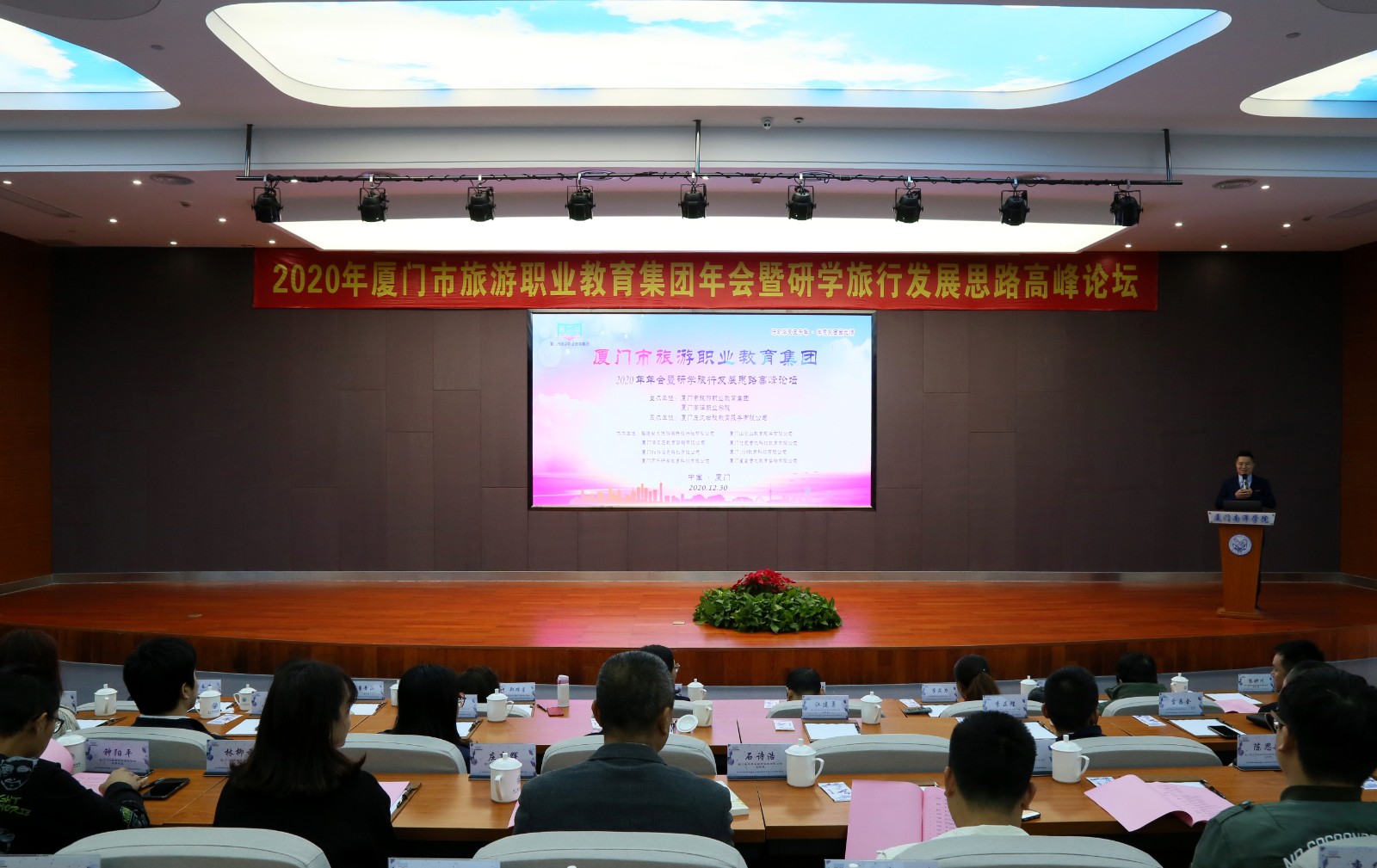 南洋社讯 12月30日,厦门市旅游职业教育集团2020年年会暨研学旅行发展思路高峰论坛在南洋学院仙岳报告厅隆重开幕。