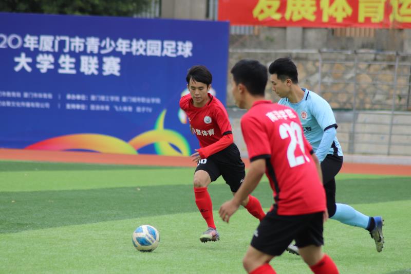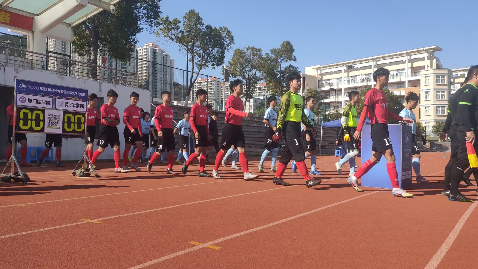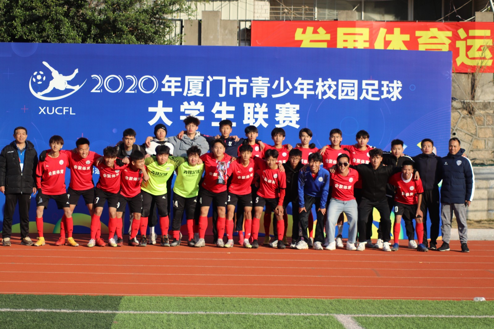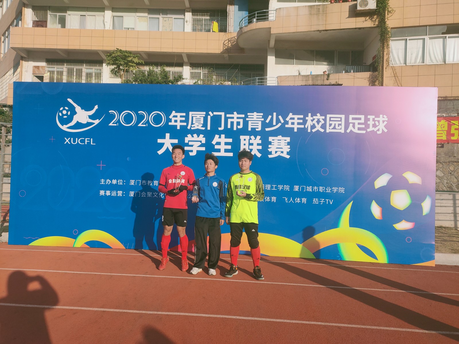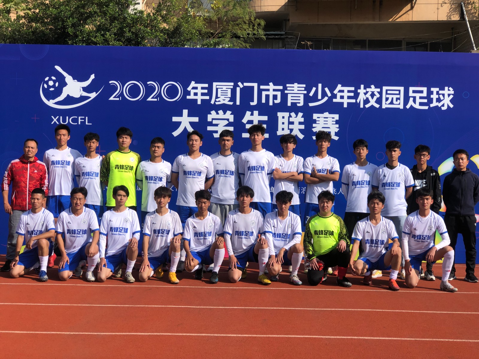 面临最关键的一役,我校男子足球队员们和教练员不骄不躁、齐心聚力、沉稳迎战、顽强拼搏,精心安排战术,积极调整心态,全力投入比赛。我校张博文同学在下半场角球进攻中率先打入一球,取得领先,却在终场前一分钟被厦门医学院代表队通过角球机会扳平。点球大战中,我校全数罚进,门将车江城同学献上精彩扑救,最终以4:2的成绩完美收官,喜获2020年厦门市校园足球大学生联赛乙组冠军的好成绩,同时囊获本届比赛乙组的“最佳球员”、“最佳射手”、“最佳守门员”、“优秀教练员”等奖项。