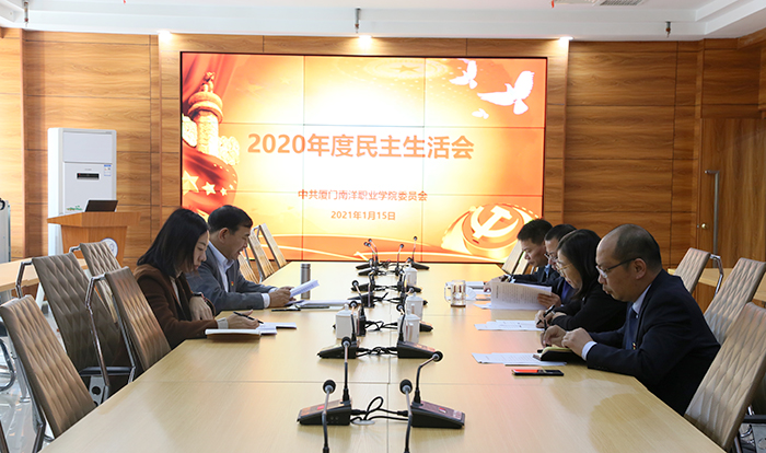 1月15日下午,厦门南洋学院党委在第一会议室召开2020年度民主生活会。厦门市教育局许桂芳副处长出席会议,南洋学院党委书记施水成主持会议,党委委员参加会议。