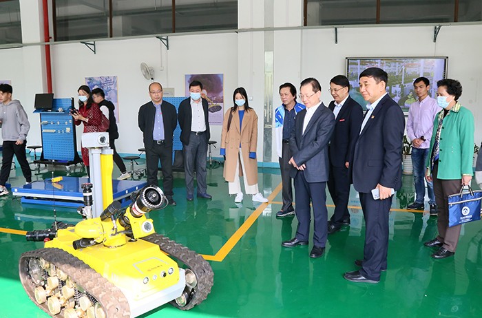 李钦辉副主席一行实地调研了科研实训大楼、学生创业活动中心等地,李钦辉副主席指出,南洋学院疫情防控和复学复课工作见事早、行动快、措施实、手段硬、效果好,值得充分肯定。他强调,学校是常态化疫情防控的重中之重。要进一步提高政治站位,认清当前形势,把思想认识统一到习近平总书记关于抓好常态化疫情防控工作的重要指示精神上来,扎紧防控篱笆,坚决克服麻痹思想、厌战情绪、侥幸心理、松劲心态。