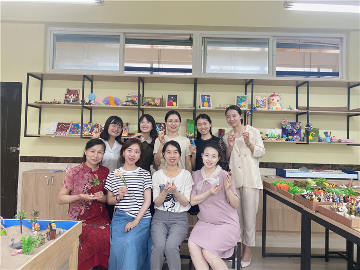 为了快速强化专注度,建立团体信任感,营造安全、信任、包容的场域,陈老师组织参与教师签团体保密协议,并通过“我是谁”游戏热身。在沙盘游戏中,大家通过触摸沙子、感受沙子,从沙具中选择一个物品代表自己,并一一分享第一感觉。五轮团体沙盘体验让大家慢慢体悟到“看见即疗愈”的过程中内心世界的游历。