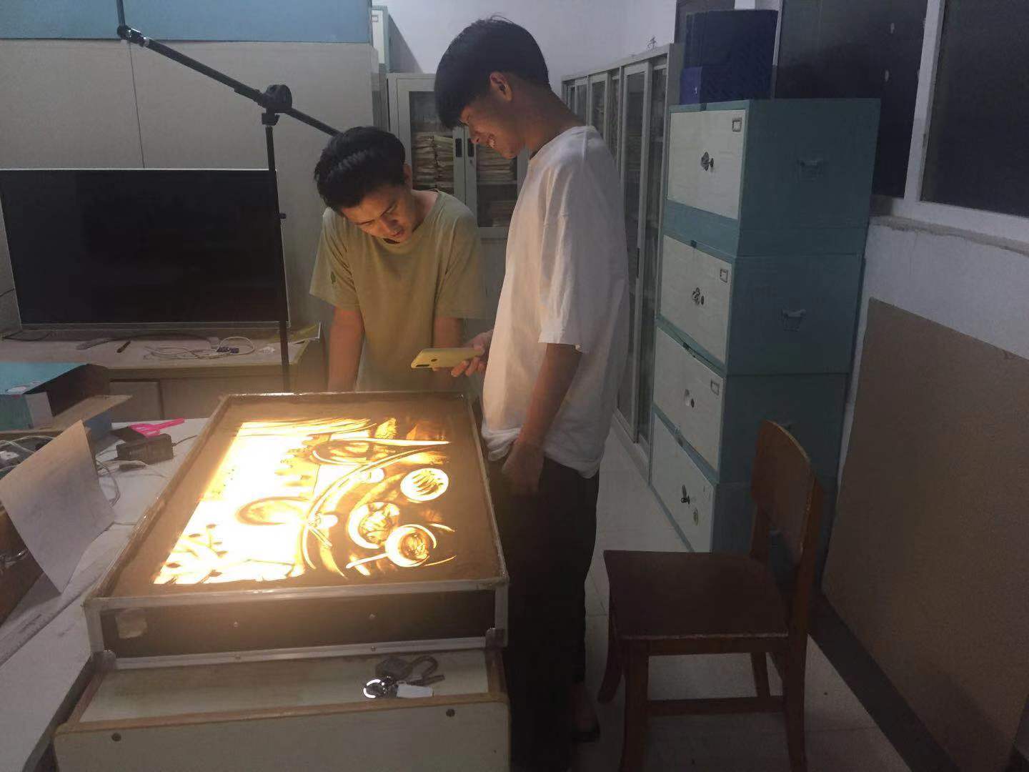 5月23日,厦门南洋学院在教学楼C1001沙画活动室开展了一次沙画创作活动。