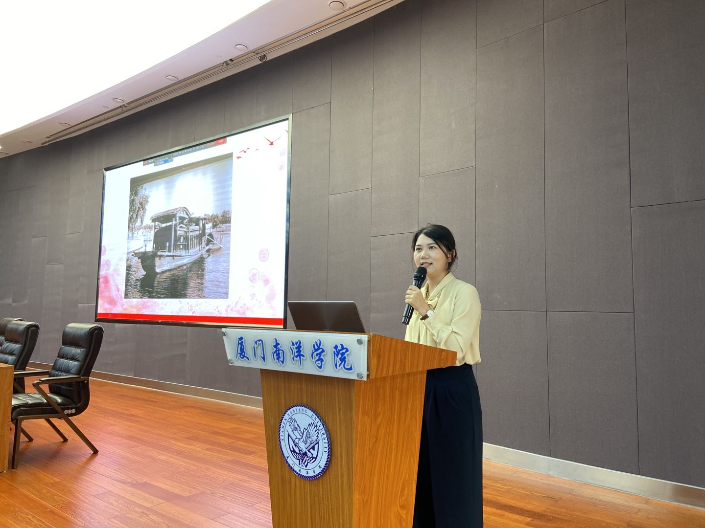 陈朝老师由远及近讲述了支撑祖国强大自信的文化底蕴,厚重积淀彰显底气。他展现一幅幅传统作品,宣扬传统基因,坚定文化自信,鼓舞人心。他以“勤奋求实,拼搏向上”的南洋精神为引,愿南洋人文共创品牌、树标杆,共建文化大校、强校、百年名校。