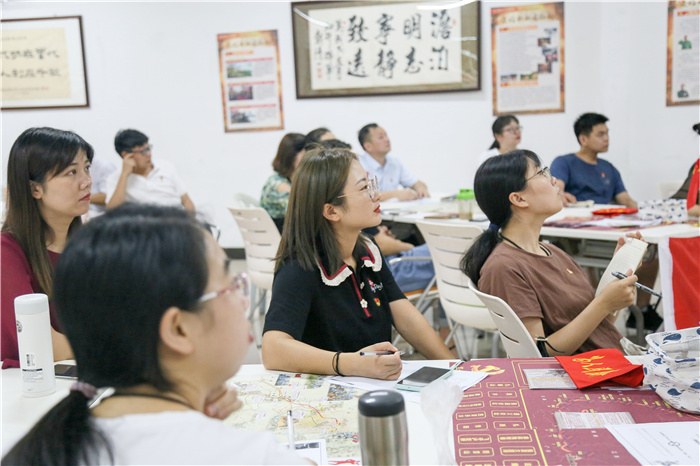 赵明讲师将沙盘模拟和党史教育相结合,以红军长征历程为背景,紧扣时间发展脉络,用大事件中的小情景还原昔日战场,清晰展现中国共产党应运而生发展史。培训分为观摩长征影片、研讨长征故事、模拟长征演练、提炼长征精神等环节,全体参会人员化身红军战士分为六个小组,在血战湘江、巧夺金沙江等经典战役的学习研讨中享受比拼乐趣,一路克服困难,朝着会宁不断前进。