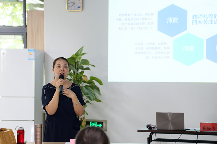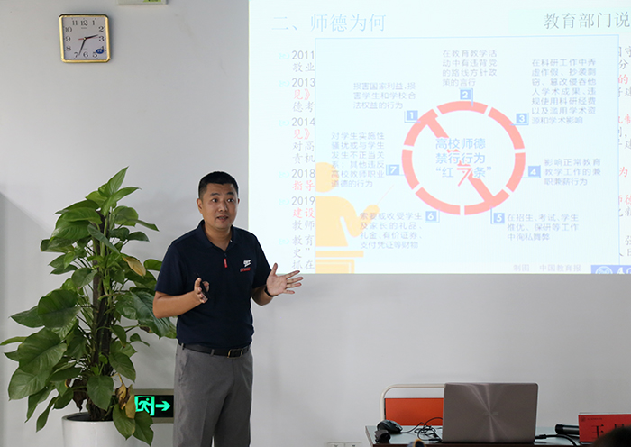 人文社科学院王晨副教授讲授《高校教师的“徳”与“风”》,鼓舞新教师要努力成为“四有”好老师,坚守师魂,落实立德树人根本任务。外国语与旅游学院李芹副教授讲授《如何备好一门课》,她以英语课程教学改革为例,演示如何备“用心”、备“需求”、备“包容”、备“拓展”、备“创新”。学前教育学院院长许智坚教授讲授《教师基本素养》,他强调教书育人是教师之本,职教教师必需具备积极的教学态度、扎实的专业知识、过硬的教学能力,还要将理实结合、因材施教。教务处副处长陈雪红讲授《教学材料规范》,详细介绍教学材料的标准,以及如何做好日常教学规范。外国语与旅游学院执行院长崔筱力副教授采用情景演练的形式,充分诠释一名合格教师在课堂教学中的行为和仪态。人文社科学院滕春玉副教授以主题沙龙形式,带领新教师集思广益解惑如何面对课堂上那些“熊孩子”。学前教育学院刘阳副教授利用学习通演示如何开展线上线下混合式教学。人文社科学院黄文革副研究员开展“玩玩教学语言艺术应用三字经——‘清’‘情’‘晴’”,带领新教师觉察习以为常语言问题、觉醒课堂教学语言资源、觉悟教师语言艺术张力。信息工程学院兼航空机电学院院长侯红科副教授、艺术设计学院刘艳艳副教授分别就个人经历和经验,分享自身在南洋的成长路。