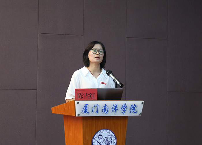 培训中,各学院院长、教师代表作了经验分享。航空机电学院副院长侯红科以《教学创新团队建设,教学成果培育凝练》为题,交流了在建设特种机器人职业教育基地和教学实践中的思考和心得。外国语与旅游学院院长崔筱力介绍了厦门市旅游职业教育集团运行情况,分析了集团工作的亮点创新、遇到的困难及解决措施。电影学院院长曲阜贵结合自身丰富美育经验,阐述了电影学院的现状和发展想法,并对国内外“德智体美劳”差异进行分析比较。思政部主任林峰就“根植红色基因,培育时代新人”主题展开分享。教务处副处长陈雪红着眼于复合型技能人才培养路径,探究如何助力学生技能成才。学前教育学院院长助理赖满瑢围绕“学前教育专业实践教学体系”阐述了自己的看法。刘艳艳老师聚焦省级教学能力大赛,就备赛过程中积累的宝贵经验与参会人员进行分享。教师陈小莲从阳光体育教学的内涵出发,探讨了此项教学的理论和现实意义。