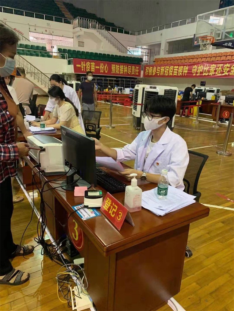 为了响应区局关于全民接种要求,助力打赢疫情防控持久战,经济管理学院抗疫“助力接种”小分队在分团委耿颖霞老师的带领下,赶赴惠安县体育馆接种现场开展秩序维护、线路指引等志愿服务,助力社区新冠肺炎疫苗接种工作有序开展。为市民提供新冠疫苗预约咨询、指引市民扫码登记信息,并仔细为市民做好疫苗接种登记安排接种,帮助使用手机不便的市民填写信息,协助维持现场秩序,同时协助医护人员完成接种工作。